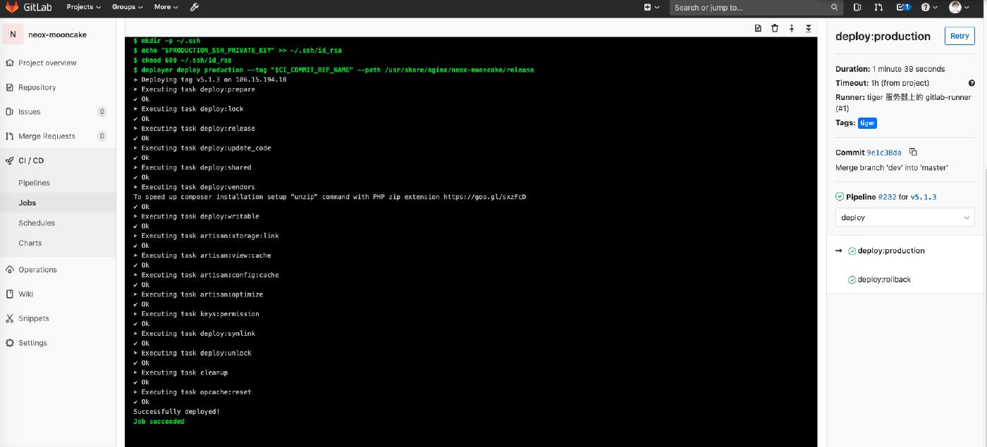 经过几天的研究(感激另一位后端同事「仁杰」提供的帮助),已经将 Gitlab 的 CI/CD 已经使用上,已经完成如下: